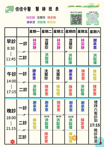 佳佳中醫診所提供多樣化的治療方式,包括針灸、推拿、電療、熱敷...等等,另外還有提供科學中藥,以及高品質的水藥煎劑來調理病患身體。佳佳中醫診所的交通便利,位於澄清醫院公車站旁邊,在200公尺內有4個大停車場,坐車停車都方便,診所內的環境整潔明亮、設施完善,讓病患能夠安心就醫,是您值得信賴的西屯中醫診所。