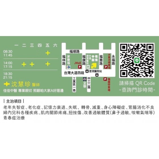 老年失智症、老化症、記憶力衰退、失眠、轉骨、減重、身心障礙症、胃腸消化不良、婦內兒科各種疾病、肌肉關節疼痛、扭挫傷、改善過敏體質(鼻子過敏、咳嗽氣喘等)、青春痘治療